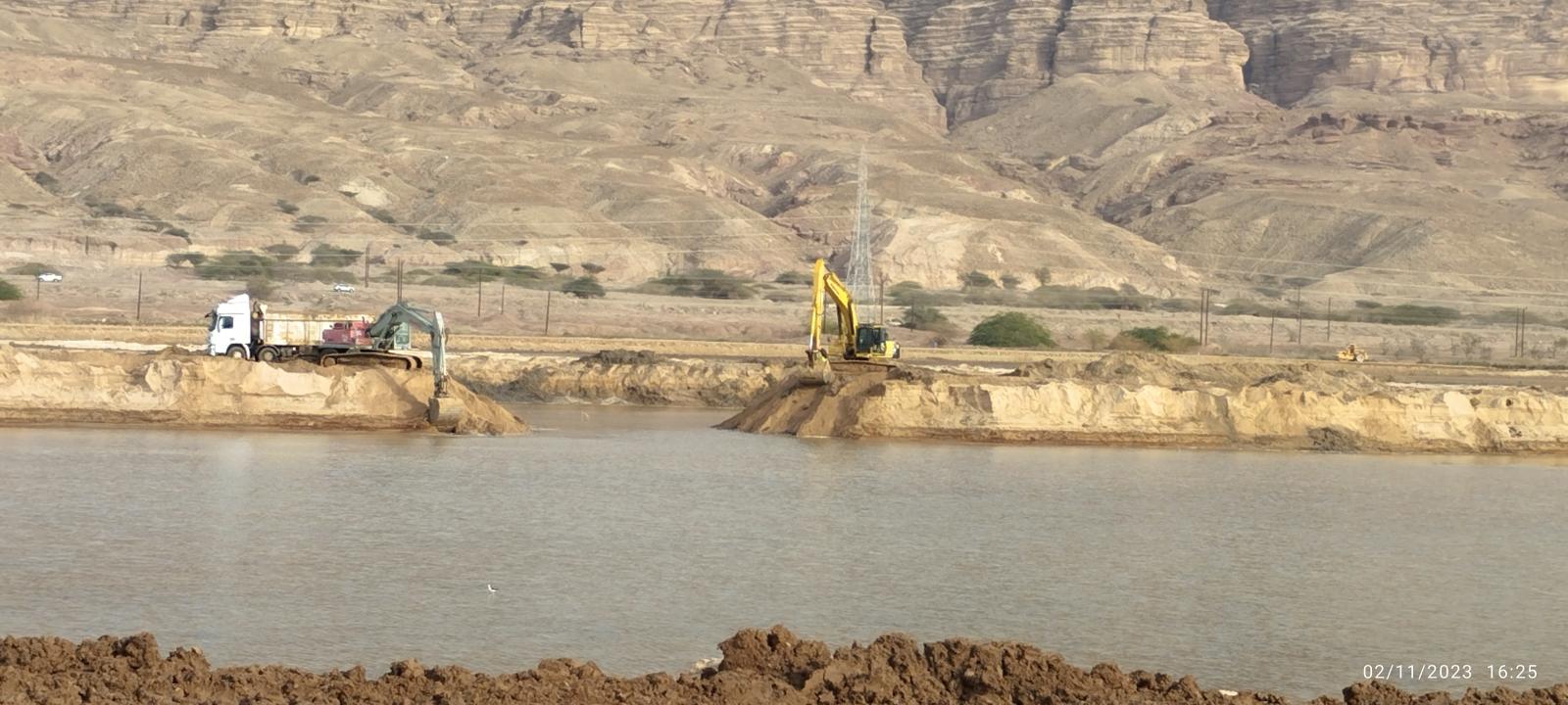 Construction of a new evaporation pond (SP2-3), with an excavation volume of approximately 3.6 million cubic meters over a land area of 1.3 million square meters. The works also include the construction of a new dike with a length of 3.5 kilometers and also an earthen flood protection dam in the Numeira Wadi area.